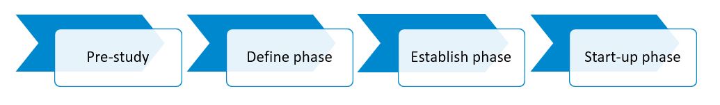 The project model of Meridion is a delivery driven model with focus on goals, milestones and risk assessment.